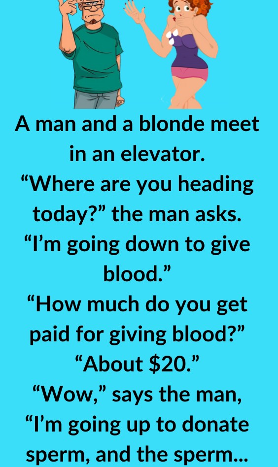 The man nods. “Not bad. I’m on my way up to the sperm bank—they pay me a hundred.”