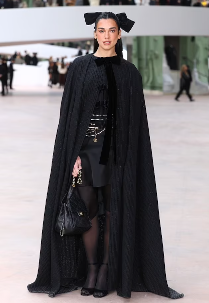 Dua Lipa shed her dramatic black floor-length cape and made a speedy outfit change as she left the Chanel show at Paris Fashion Week. Image Link with Class Image Link with Class