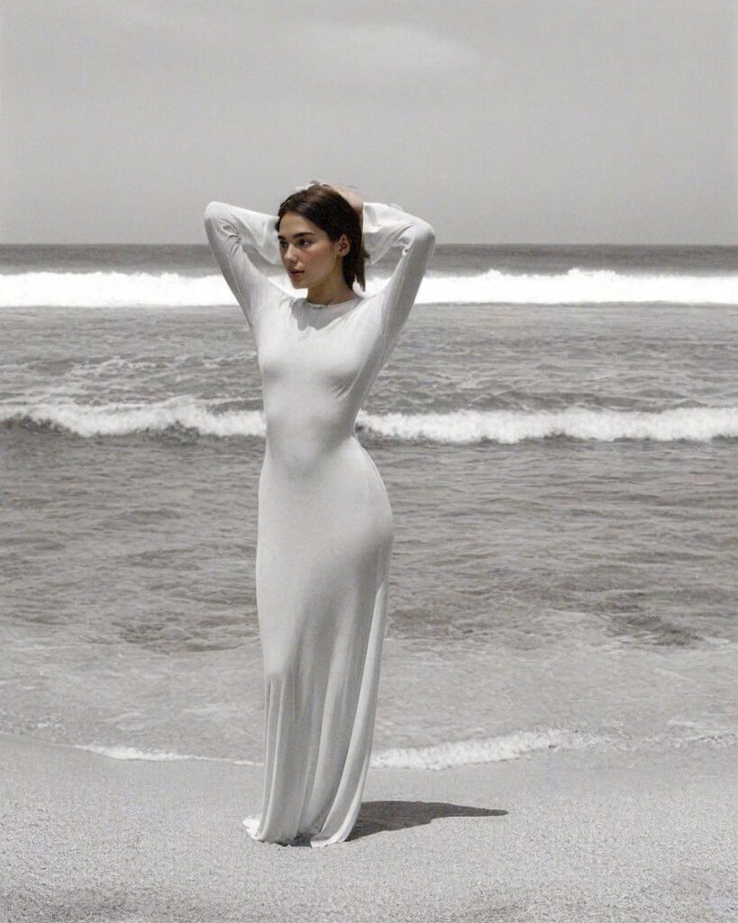 Dua Lipa is once again pushing fashion boundaries — this time in a sheer, barely-there white dress that’s caused a wave of reactions across social media. Captured at the edge of the sea, in a raw and minimalist setting, the global pop icon appears effortlessly elegant — no big production, just nature, light, and a perfectly styled moment.