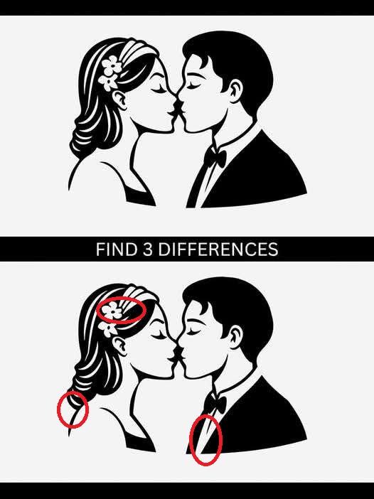 Spot-the-difference puzzles are more than just a fun way to pass the time — they’re great for sharpening your focus, attention to detail, and short-term memory. In this visual brain teaser, we’re shown a romantic scene where a couple is about to share a kiss. At first glance, the two images appear identical, but hidden within them are three subtle differences that will test your observation skills.