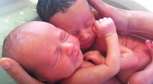In a video posted in 2013, a woman cradles two newborn babies while running water over them. This special bathing technique is called the Thalasso Baby Bath, and it was invented by Sonia Rochel. Rochel is a maternity nurse in Paris, France. She shared that the twins seen in the video are a boy and a girl and they reacted to the water just like they were in the womb again and never let go of their sibling throughout the entire experience.