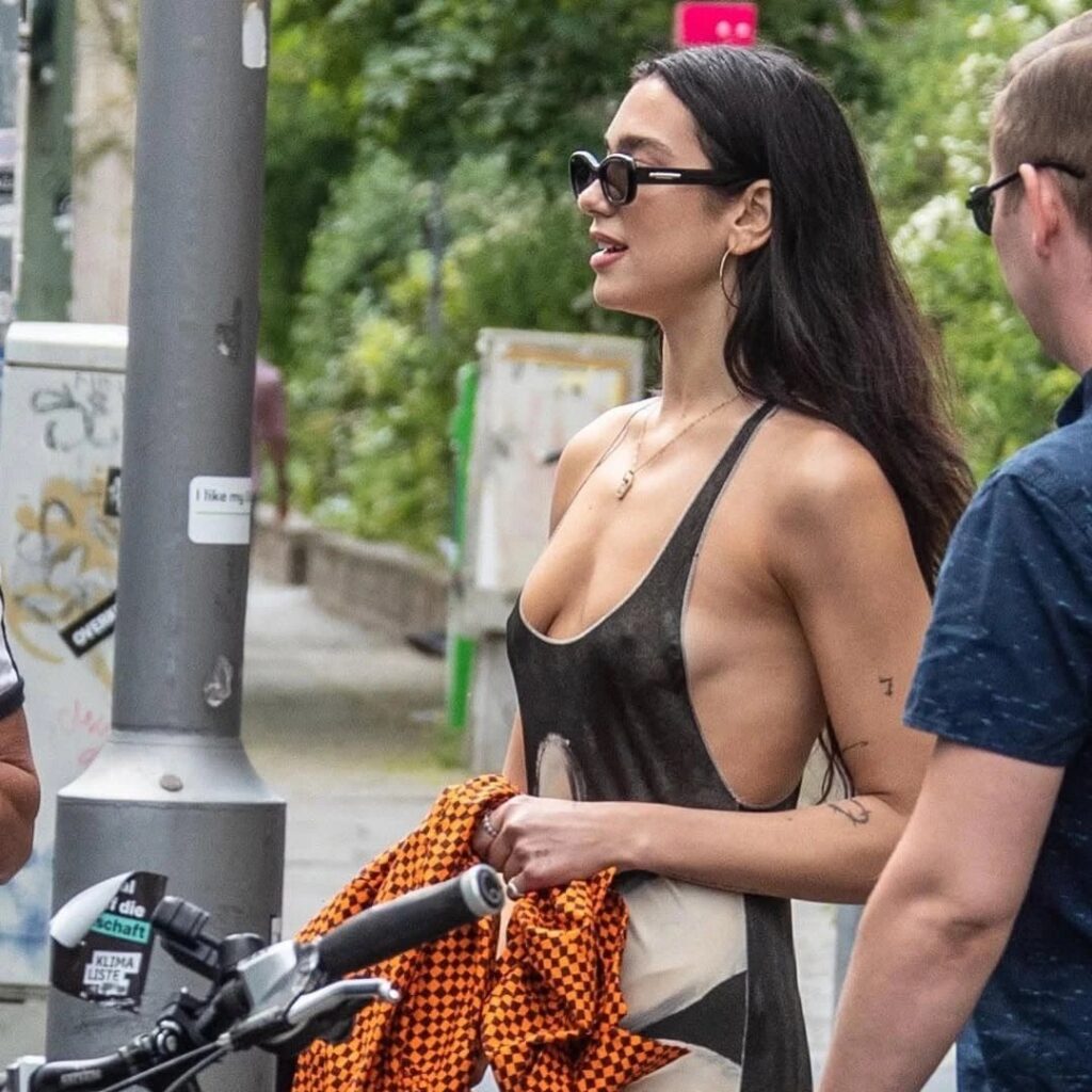While in Berlin amid her ongoing European Future Nostalgia tour, Dua Lipa was spotted embracing a chic, carefree springtime vibe—no bra, flower-print dress, and strappy green heels under the city’s soft, late-spring sun