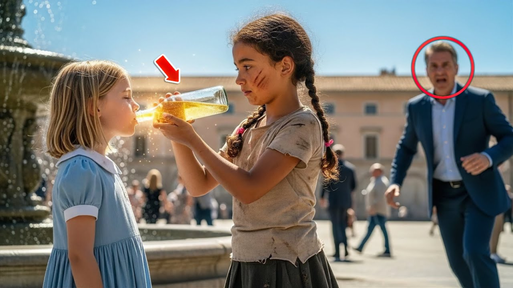 Across the street, near a cracked fountain, stood a girl around her age — barefoot, her hair tangled, her skin glowing under the harsh city sun. She wore a faded dress and clutched a small glass bottle filled with a golden liquid. Despite her appearance, her posture was proud, her gaze steady.